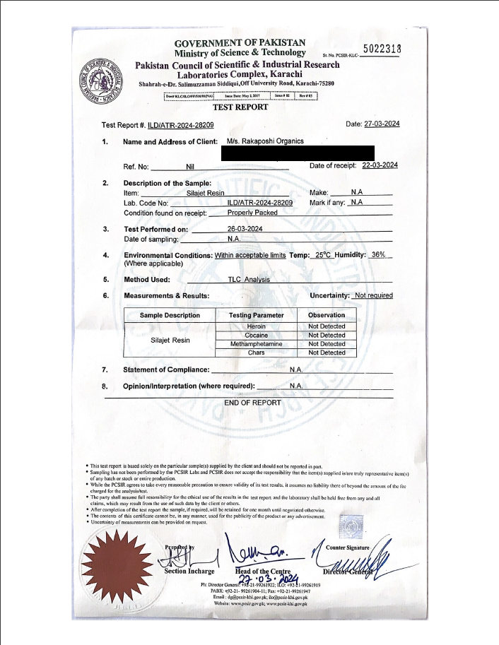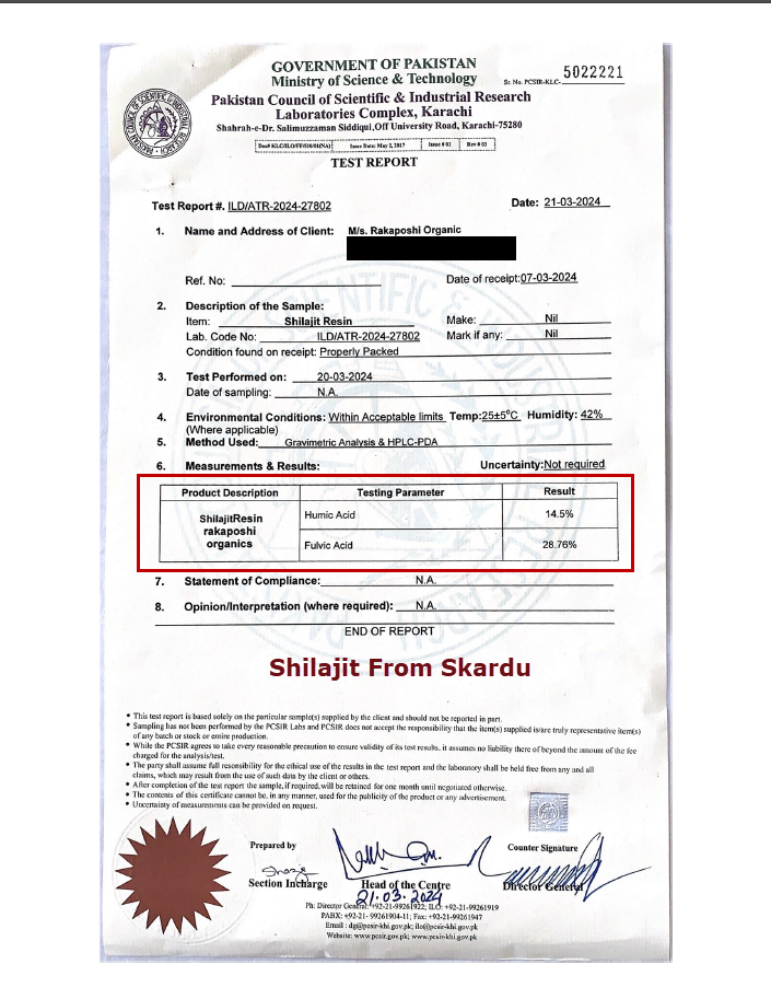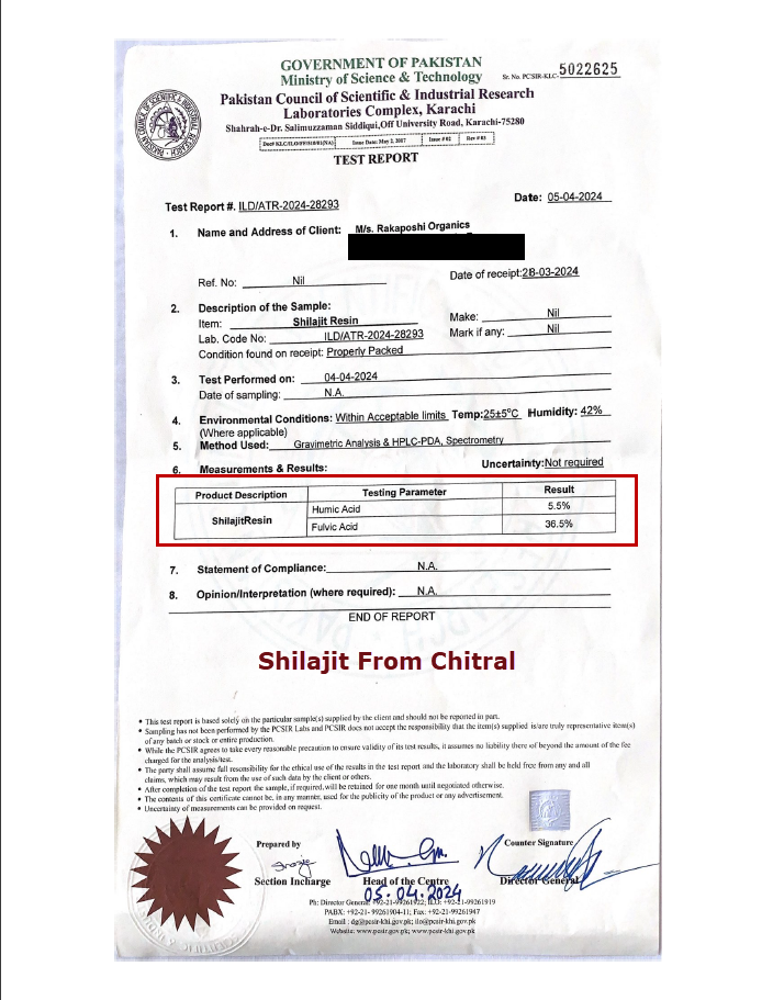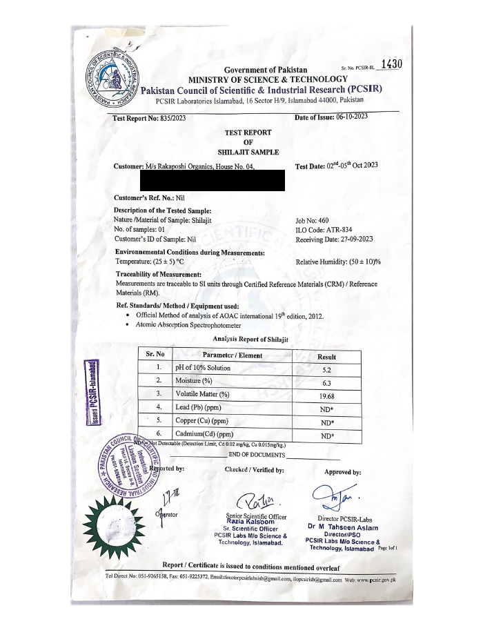 The following are the most recent lab results for our Shilajit from the PCSIR: